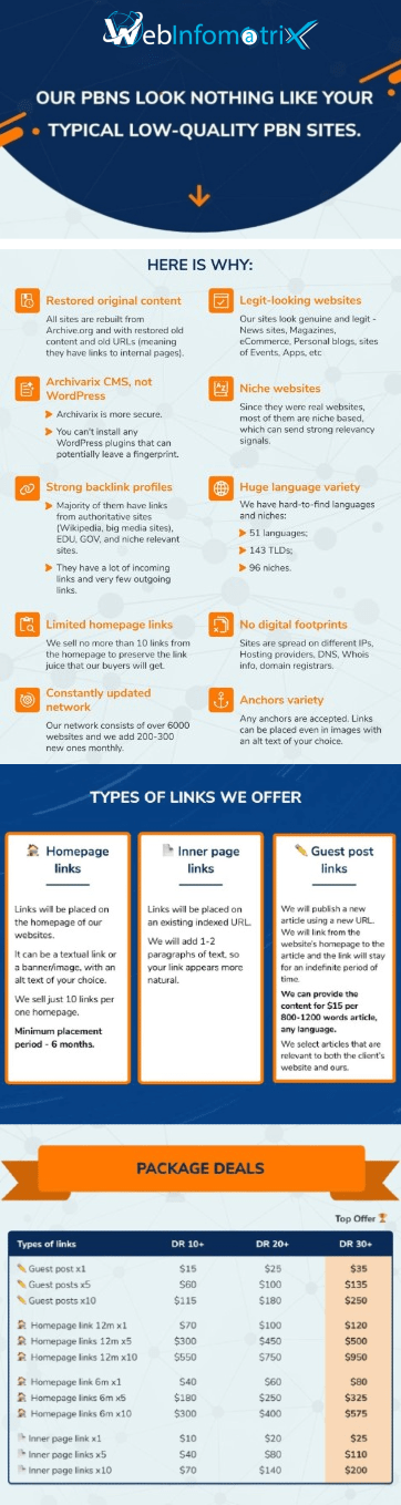 Maximizing the earnings of your PBN requires a strategic approach to managing footprints at multiple levels. At Webinfomatrix, we provide expert solutions to address footprints related to domain registration, hosting, site quality, and post patterns. By implementing our advanced strategies, you can enhance the effectiveness of your PBN and achieve superior SEO results. Contact us today to learn more about how Webinfomatrix can help you optimize your PBN and drive greater success for your online presence.